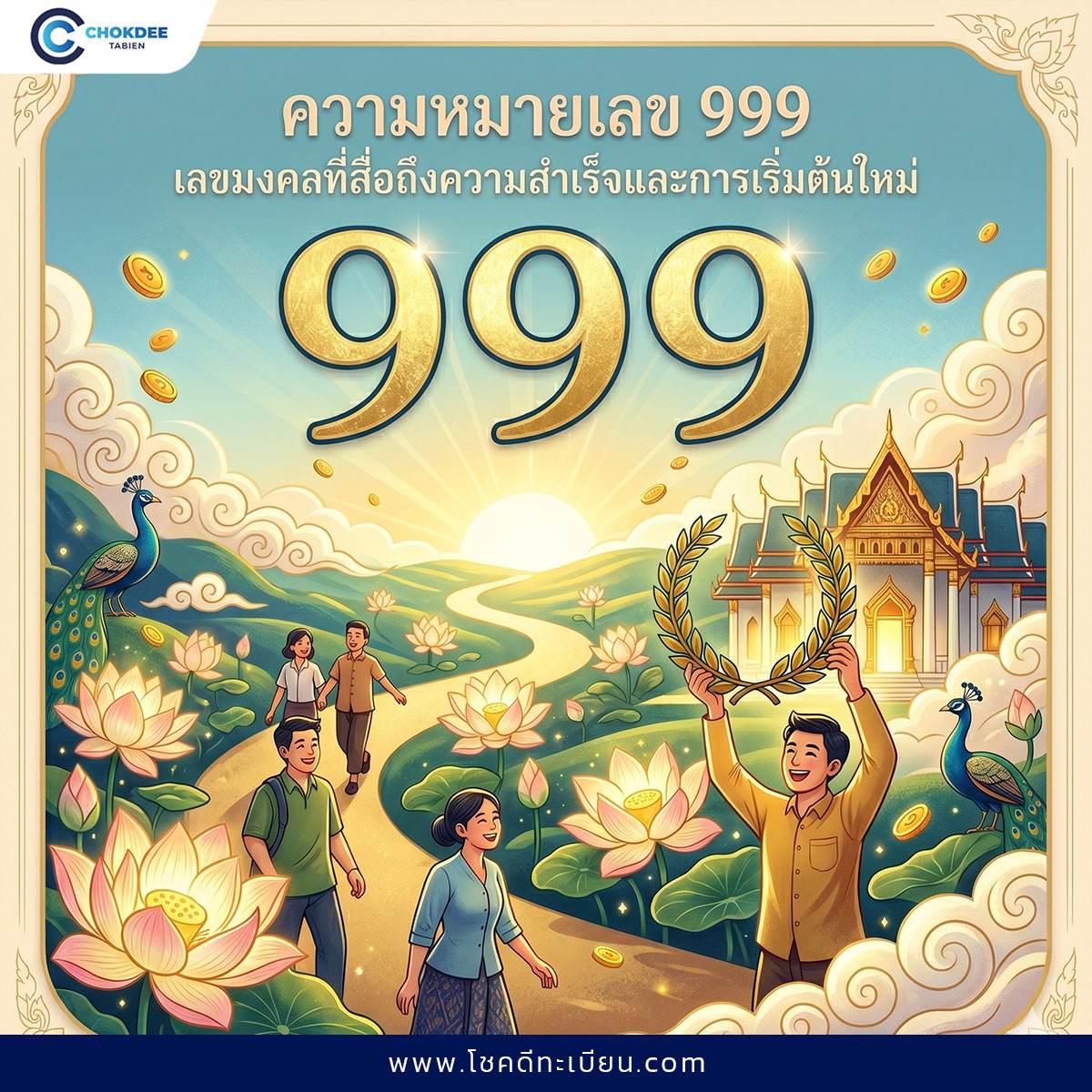 เลข 999 เป็นเลขที่สะท้อนถึงพลังแห่งความสำเร็จในหลายด้านของชีวิต มักมีโอกาสก้าวหน้าในหน้าที่การงาน เพราะเป็นคนที่มีความตั้งใจ มุ่งมั่น และขยันทำงานอย่างต่อเนื่อง จึงมักประสบความสำเร็จจากความพยายามของตนเอง