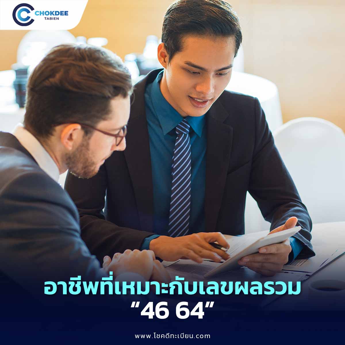 เมื่อพิจารณาจากพลังของเลขคู่นี้ซึ่งเด่นด้านสติปัญญา การสื่อสาร เสน่ห์ และศิลปะวิชาการ ผู้ที่อยู่ภายใต้อิทธิพลของเลข 46 และ 64 มักเข้าถึงผู้คนได้ง่าย มีวาทศิลป์ มีความคิดสร้างสรรค์ และได้รับการสนับสนุนจากผู้ใหญ่ โดยอาชีพที่สอดคล้องกับพลังของเลขคู่นี้ ได้แก่