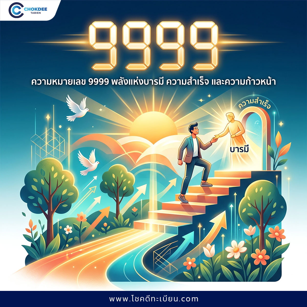 เลข 9999 ถือเป็นหนึ่งในเลขทะเบียนรถที่มีพลังสูงมาก เพราะเป็นการรวมพลังของเลข 9 ถึงสี่ตัว ทำให้พลังแห่งความสำเร็จ บารมี และโชคลาภเด่นชัดยิ่งขึ้น จึงส่งเสริมในเรื่องของความสำเร็จ และความก้าวหน้าแบบก้าวกระโดด ผู้ที่ใช้เลขนี้มักได้รับการสนับสนุนจากผู้ใหญ่ เพื่อนร่วมงาน หรือคนรอบตัวอยู่เสมอ